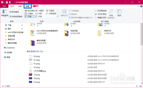进入资本办理器,我们也没有看到窗口左侧有【桌面】项,点击东西栏的【查看】;