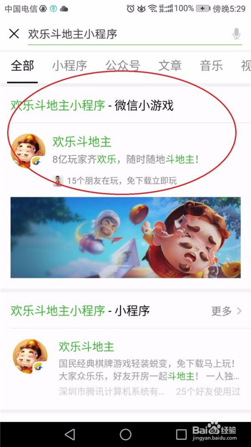 在搜刮栏里输入关头字“欢喜斗地主”,很快就能找到该游戏法式啦!