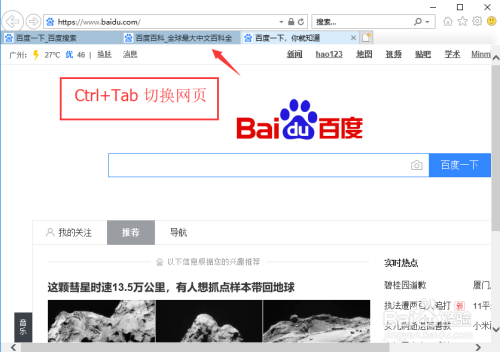 若是你在浏览器中打开了良多个网页,想要快速切换到别的一个网页的话,按住键盘上的Ctrl+Tab键就能快速切换网页了。不需要用鼠标点击,更便利快速。