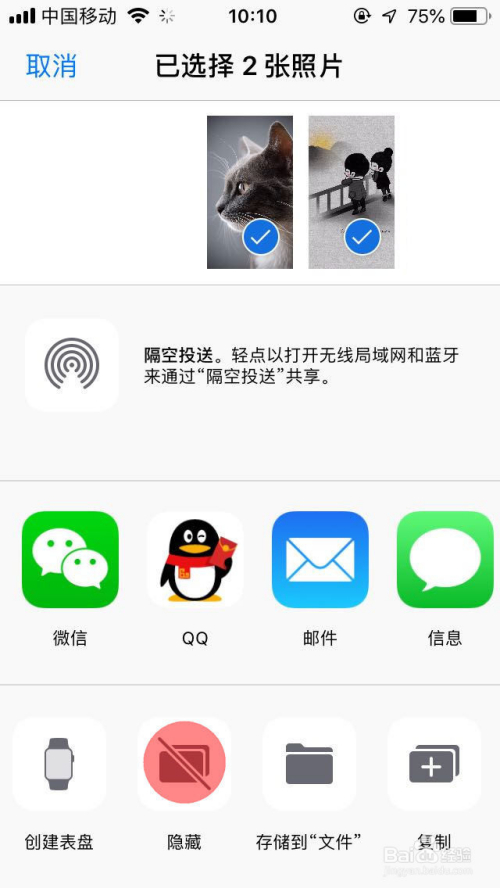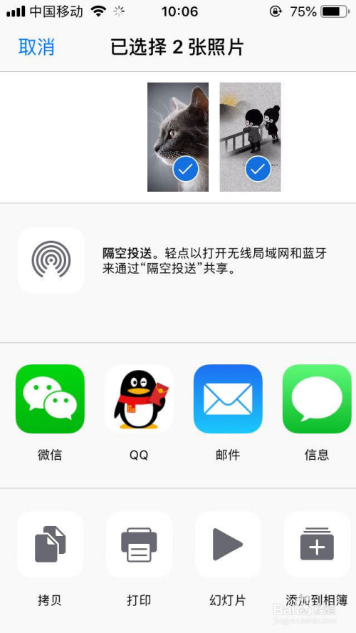 选中选好后,点击左下角的分享按钮,打开更多照片功能设置。