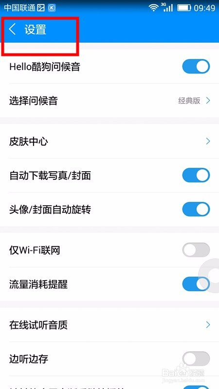 顿时即可看到酷狗音乐应用的设置页面及各类设置选项;