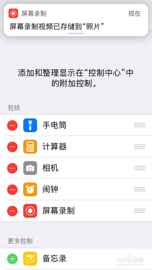 如许,我们就将屏幕录制功能开启了,我们还可以经由过程按住后面的三条小横线按钮,来改变屏幕录制功能与其他功能的摆列挨次,将屏幕录制功能拖到一个我们喜好的位置上。