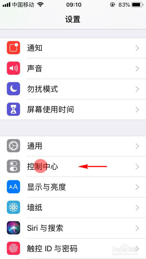 进入到设置后,标的目的上滑动菜单选择菜单栏里的节制中间菜单,点击进入。