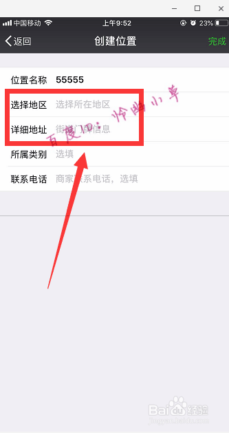 这里就可以建立位置了,地域和具体地址必需选择,可以选跟本身的真实位置纷歧样的。选完今后显示的就是本身适才自界说的位置了。
