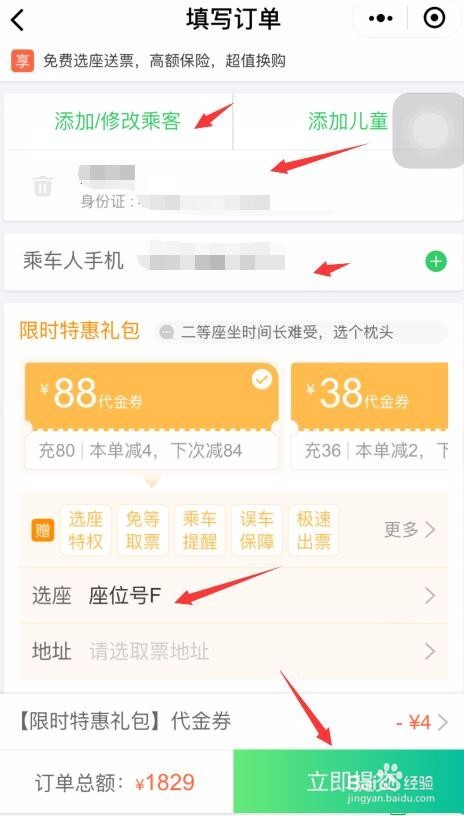 最后,按要求把乘坐人,德律风,身份证号填好,选好座位,点击提交就可以了。