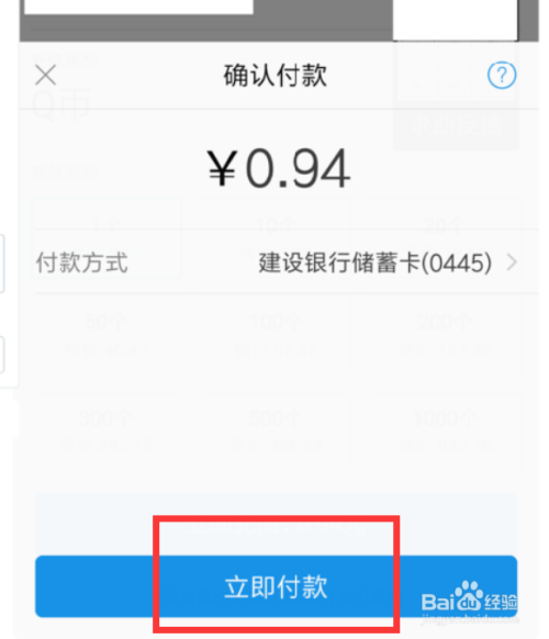6.最后在新弹出来的【确认付条目】页面中,选择足够余额的银行卡【付条目体例】,点击最下面的【当即付条目】按钮即可充值当作功。