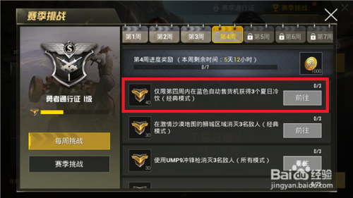 接下来会进入到每周使命挑战界面,这周是第周围,可以在第一个使命中发现【蓝色主动售货机获得3个夏季冷饮】使命,只要在经典模式获得3个冷饮即可。