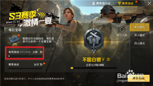 在S3赛季界面中最左边可以看到【每周挑战】,这个是通行证中的每周使命,点击一下这个选项。
