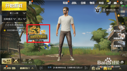 打开刺激战场,进入游戏年夜厅后找到【S3赛季】并点击打开。