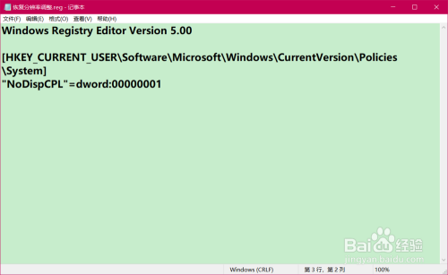 若是我们本身需要调整分辩率,则可以建造一个【恢复分辩率调整.reg】的注册表文件,添加到注册表中。