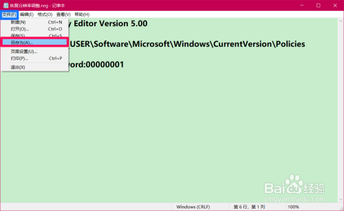 点击记事本窗口左上角的【文件】,鄙人拉菜单中点击【另存为】;