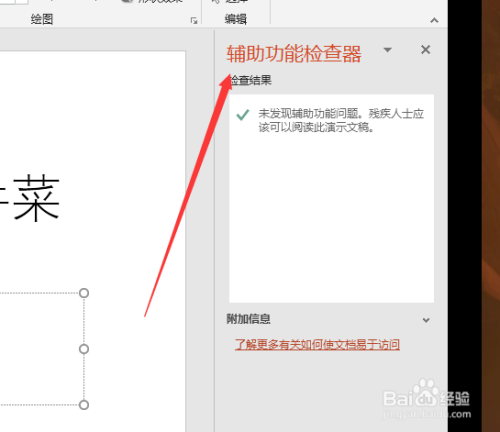 若是查抄辅助功能,会弹出辅助功能查抄器,查抄是否有残障人士未便阅读的内容。好比图片什么的,若是没有文字描述,在朗读的时辰图片就无法表达出来。