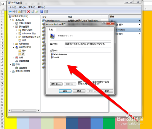然后我们返回计较机办理界面,点击用户组查看计较机办理员账户。