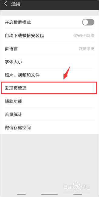 再然后选择通用,点进去。你会看到有个发现页面办理。如下图所示: