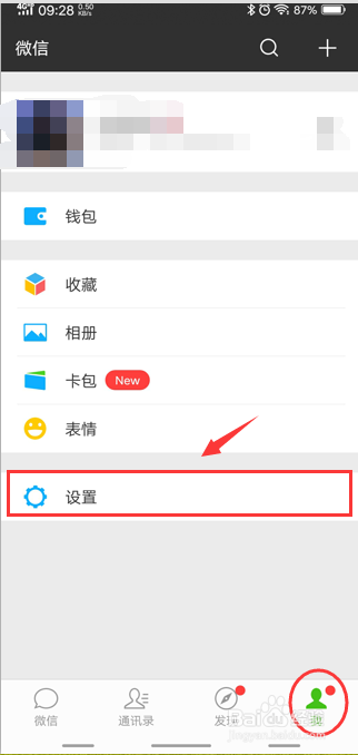 然后点击我的界面,找处处于最下面一行的设置,点击一下设置。如下图所示: