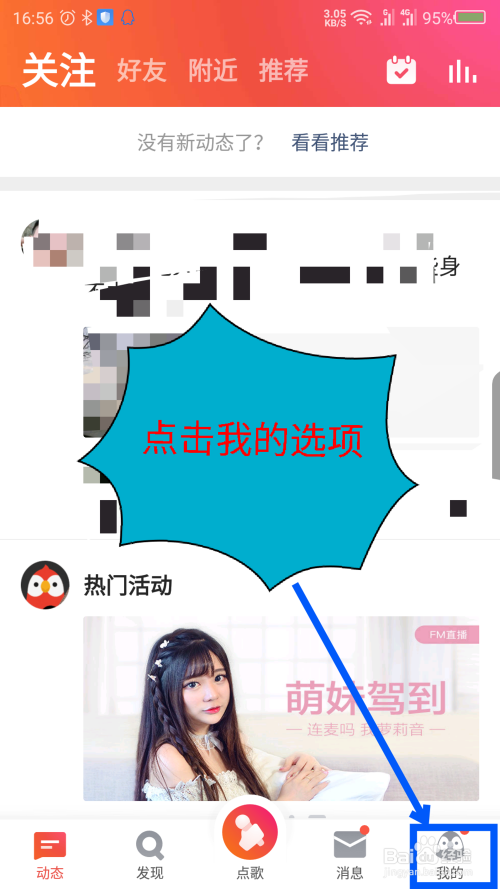 点击手机桌面上的全平易近k歌,打开软件后在软件首页,点击底部导航栏中我的选项,在软件的最右边,如图所示。