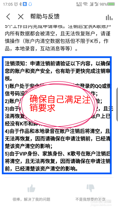 点击打开后,必需要细心阅读一下刊出须知申明,知足要求才能刊出账号,否则就算提交的刊出申请,也不一定能经由过程。