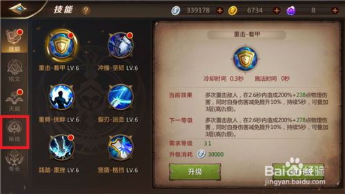 在技术界面中的左边有4种技术,点击第三个【秘技】。