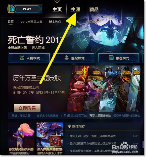 在英雄联盟的游戏客户端,我们点击左上角的生活生计按钮。