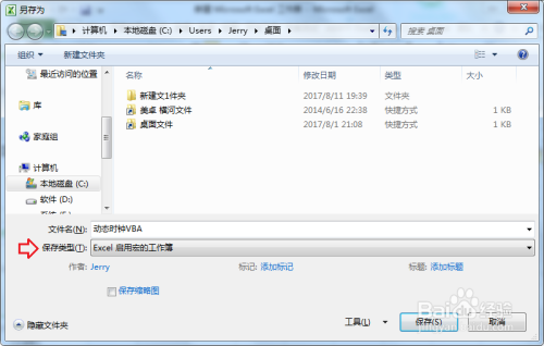 文件定名为《动态时钟VBA》,在文件保留类型里面选择“启用宏的工作薄”。