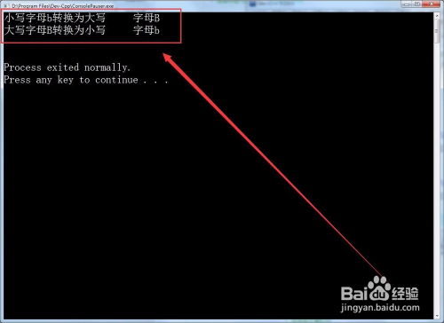 运行法式,在窗口中当作功输出转换后的大小写字母。
