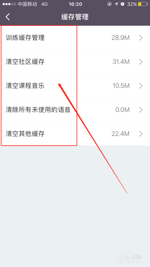 在【缓存办理】界面,我们可以看到练习缓存、社区缓存、课程音乐、所有未利用的语音、其他等缓存选项,我们选择【清空全数】即可,手机内存获得释放,运行速度也会年夜年夜晋升