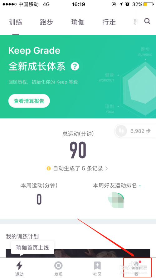 首先我们打开手机Keep APP,进入本家儿界面后,我们找到并点击右下角【我】的选项