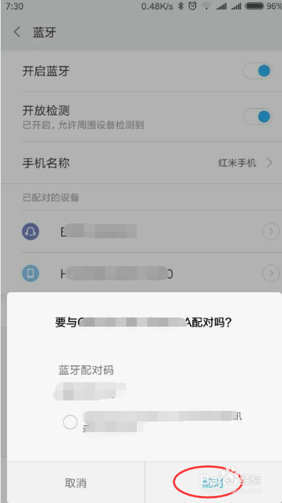 或者手机一和手机二进行配对,同样操作,若是一方配对当作功后别的一方就不需要在反复进行配对啦。如图。
