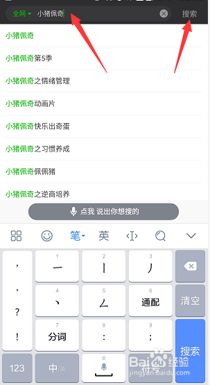 点击搜索框后,会弹出手机键盘,在搜索框输入本身想要看的视频名称,然后点击搜索框右边的“【搜刮】”