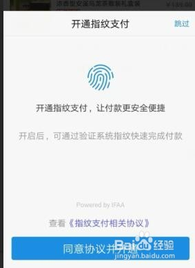 此时,若是手机撑持指纹,可能会呈现下图提醒,可以开通这一付出体例,到时直接验证手指上的纹路即可。