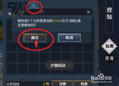 打开仓库,可以看到,上面有个+,点击就可以扩充仓库,不外会耗损年夜量交子