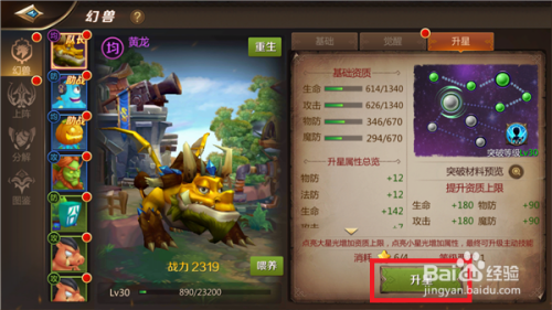 升星本家儿要针对的仍是幻兽的根本属性,升星越高幻兽的根本属性提高的越高,点击【升星】即可。