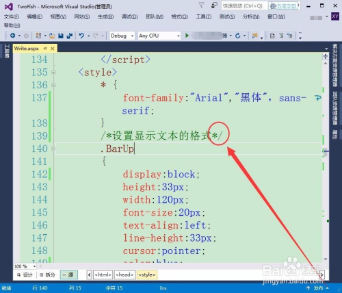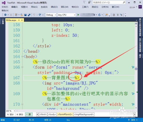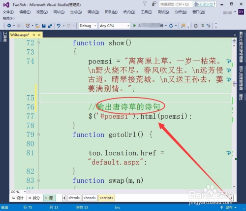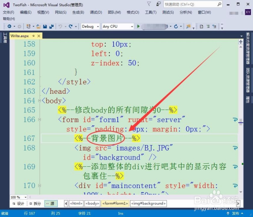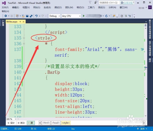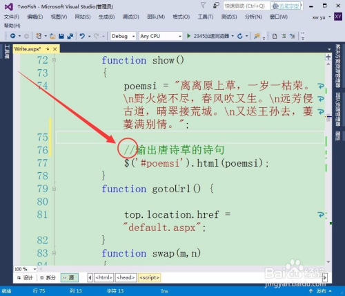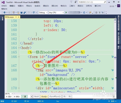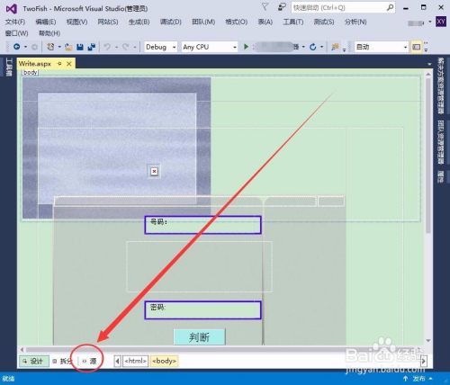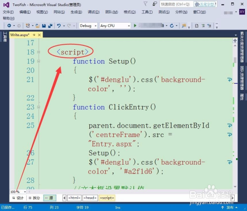 打开Visual Studio软件,选择一个已有的网页,本例为Write网页。