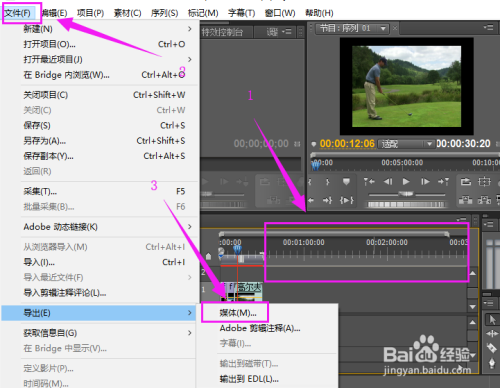 此刻起头导出媒体,点击菜单栏的文件,选择“导出”,如图所示