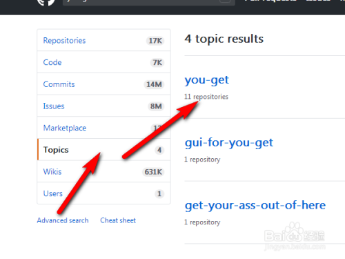 可以在这里搜刮一个项目。这里有个技巧:若是你输入的内容刚好是一个项目名,那么会显示出来,你点击就进入了项目页面;若是你没点呈现的项目名,而是点了回车,那就到了下面这个界面。