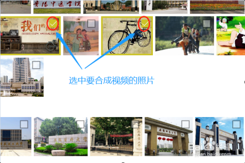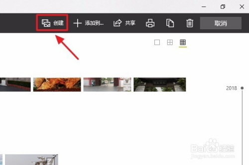 点击此应用今后,它会主动显示电脑图库里面的所有照片,我们点击照片右上角的小方框将其选中,紧接着点击软件右上角的“建立”,如下图二...