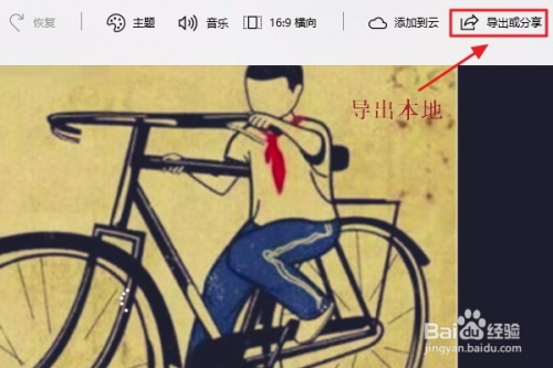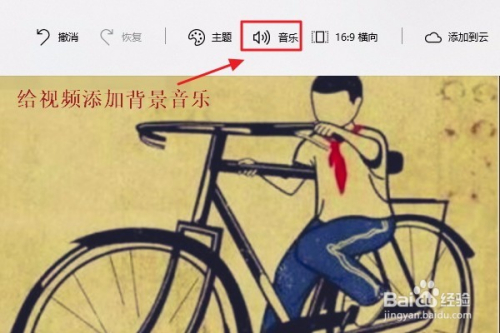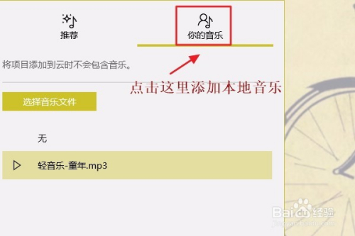 不外既然是视频,那么必定少不了布景音乐,我们点击视频窗口上方的“音乐”-“你的音乐”,然后接添加我们本身下载的当地音乐了,最后在软件右上角将其导出即可;
