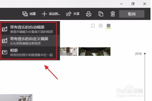 接着在建立下方会弹出三个选项,别离是“带有音乐的主动视频”、“带有音乐的自界说视频”以及“相册”,一般来说选中第二种比力合适;