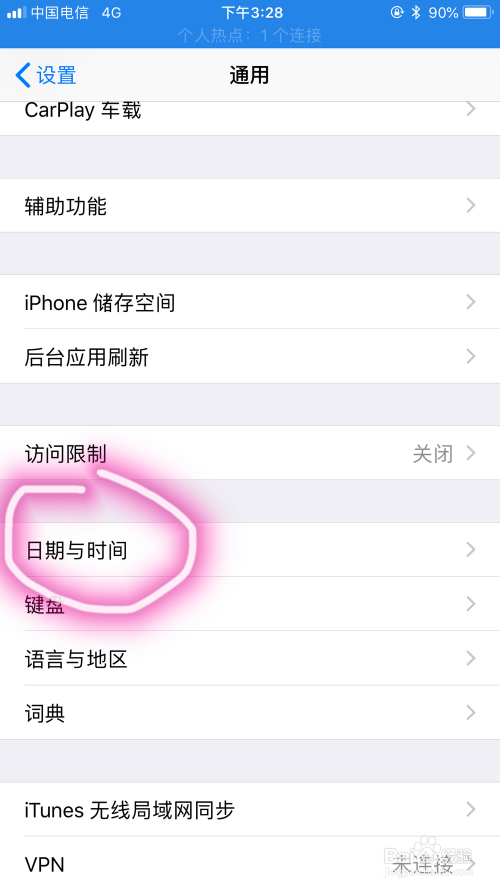 第二步我们退出App Store,打开设置,找到通用设置,在通用设置里找到时候与日期设置。