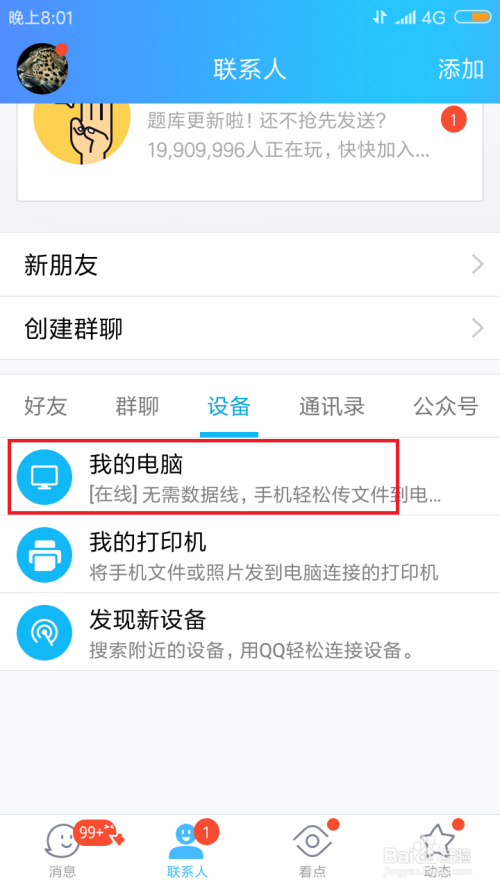 点击打开qq,点击联系人,进入如下页面 。