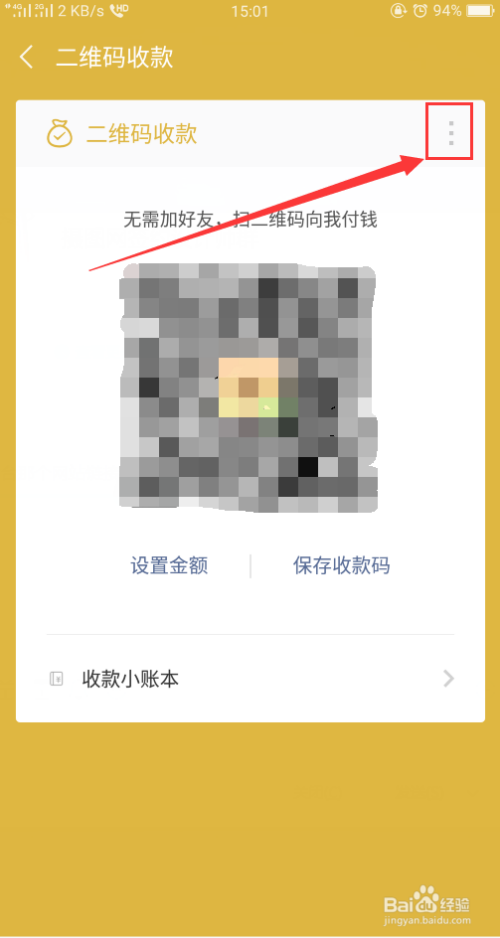 然后点击二维码收条目界面右上角的三个点的图标,如下图所示。