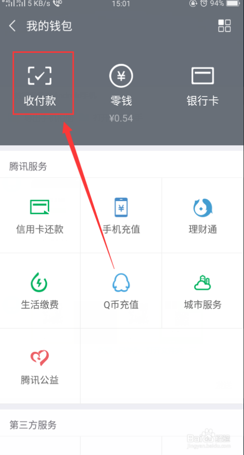 进入我的钱包界面后,点击右上方的【收付条目】,如下图所示。