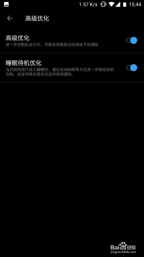 在高级优化中查看开启睡眠待机优化是否已经开启了,这里默认是开启的,这里若是是封闭的就需要开启该功能