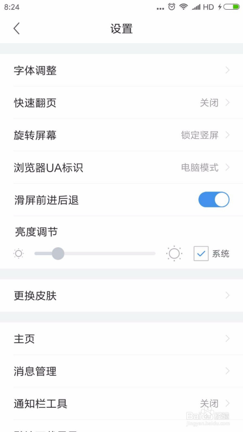 在设置界面,我们可以对浏览器进行参数设置,我们标的目的下拉,找到并点击“动静办理”。