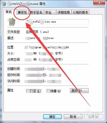 属性窗口中,选择兼容性选项卡。