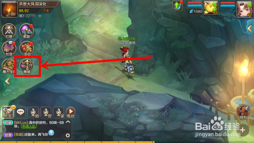 打开魔力宝物手游,在游戏本家儿界面的左侧功能按钮区,点击"打怪"按钮。
