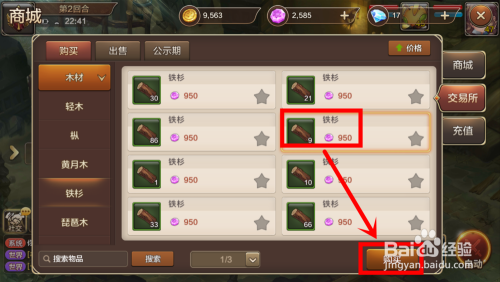 在铁杉页面中,可以看到所有玩家出售中的铁杉,选中一项,点击“采办”,大师可以操纵魔币来进行采办。
