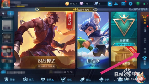 首先,打开王者荣耀,点击右边的【不雅战】。