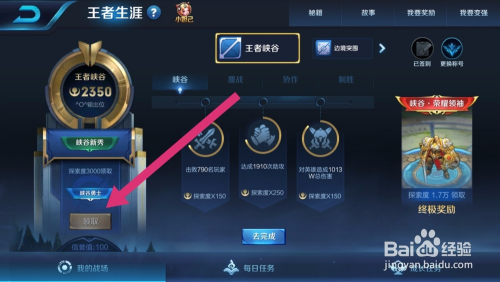 然后进入本身的王者生活生计,点击中心能领取的,点击领取摸索度。