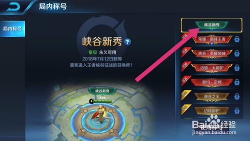 进入游戏后,在泉水里就可以看到峡谷称号了。